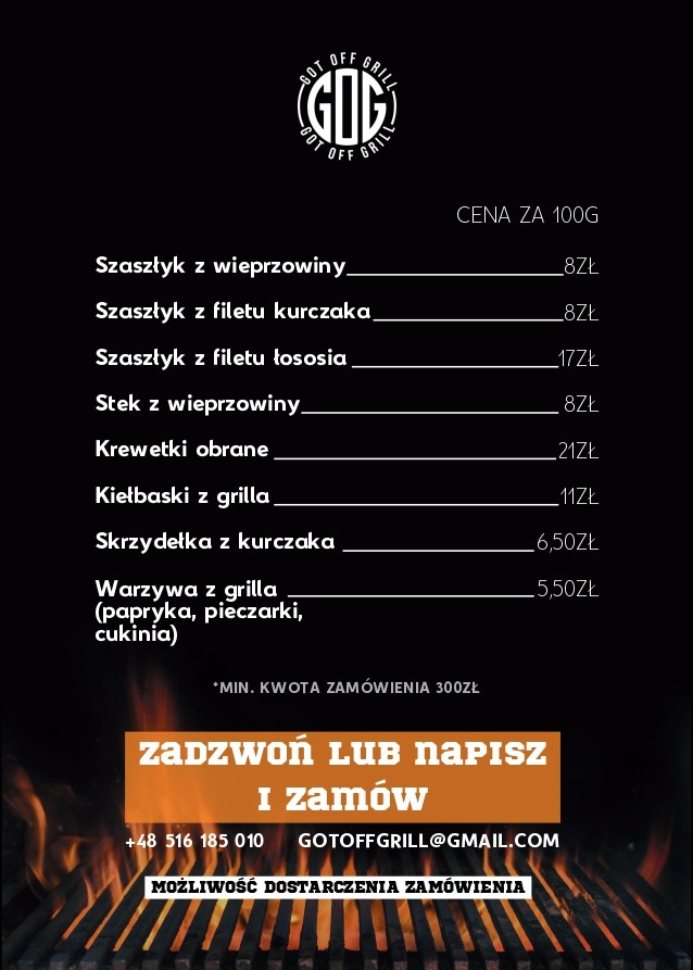 W tym celu skontaktuj się z nami pod numerem telefonu +48 516 185 010 lub drogą mailową gotoffgrill@gmail.com.